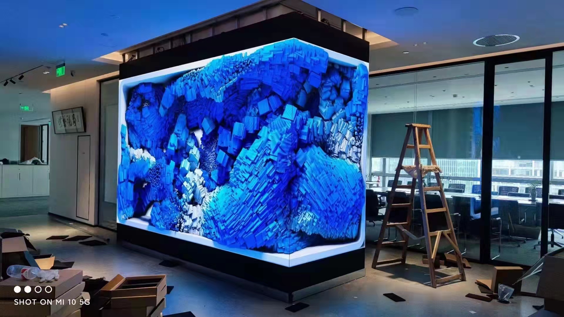 山東室內折角全彩LED電子顯示屏安裝效果